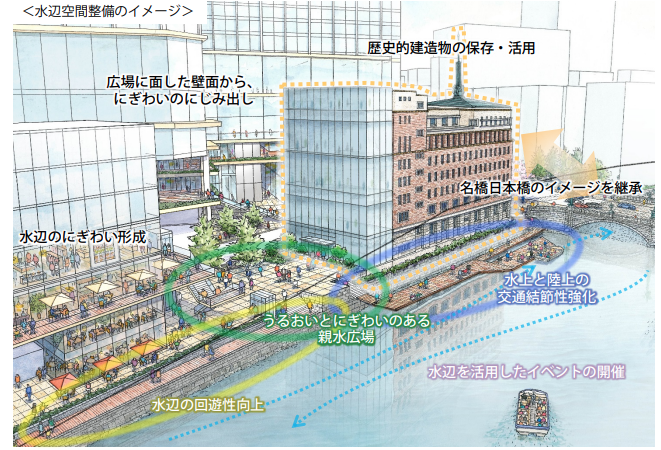 この再開発は、日本橋川を中心とした5つの再開発区域とその周辺一帯エリア「日本橋リバーウォーク」の一翼を担っています。